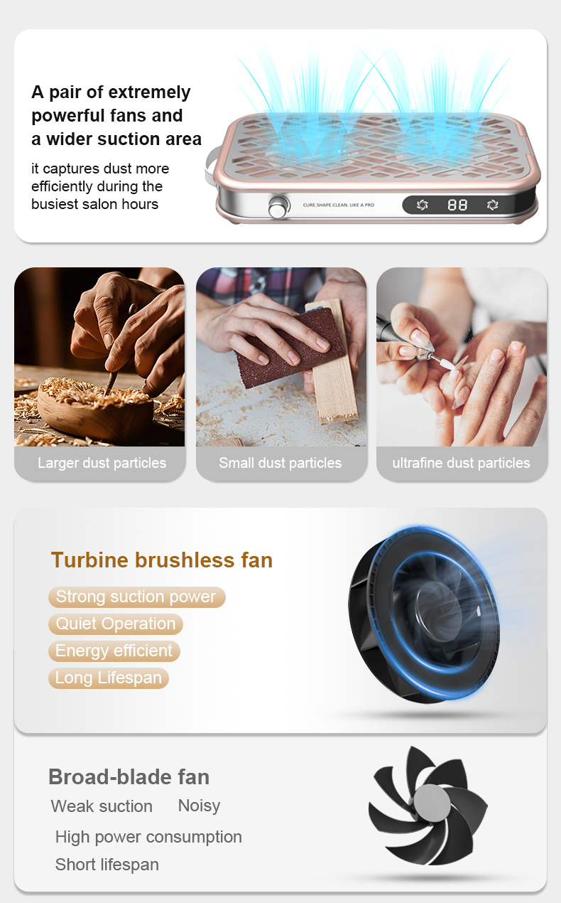 Dual Turbo Adjustable Speed Nail vacuum cleaner 48W Strong Suction with